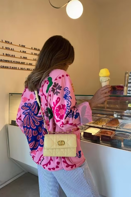 Bu şık sonbahar ve kışlık pamuklu ceket, gizli düğmeli yuvarlak yakalı ve göz kamaştırıcı mavi çiçek baskısına sahiptir. Benzersiz baskı modaya uygun bir dokunuş katarken, dar bel siluetinizi güzel bir şekilde vurguluyor.