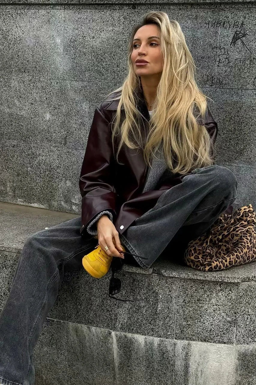 Amora™ Şık Yaka Deri Biker Ceket