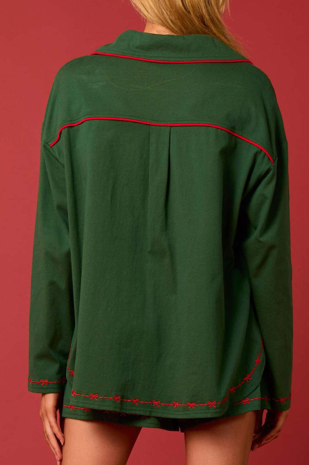 -Stil: Uzun kollu gömlek ve eşleşen şortlu pijama takımı