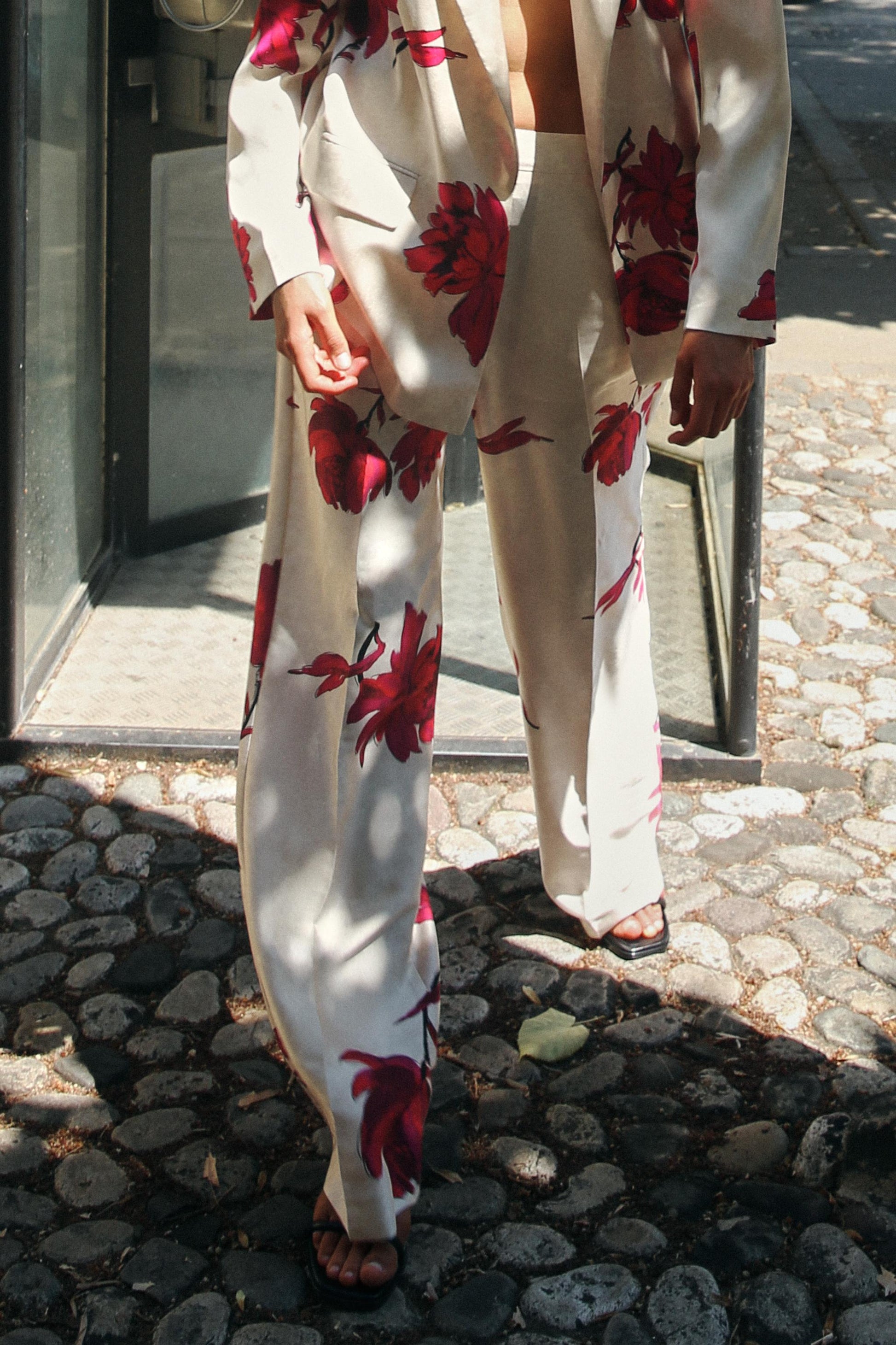 • Blazer: Soyut çiçek desenli, tamamen astarlı