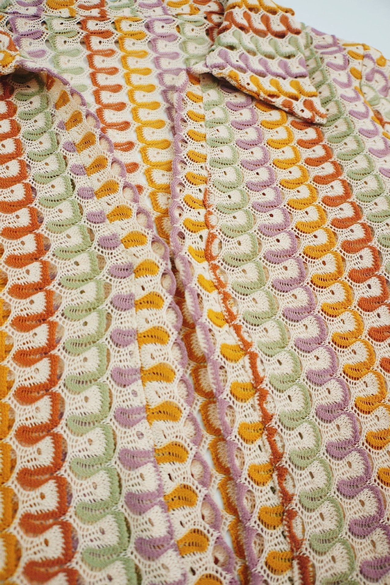 Amora™ Şafak V yakalı yakalı tığ işi uzun elbise